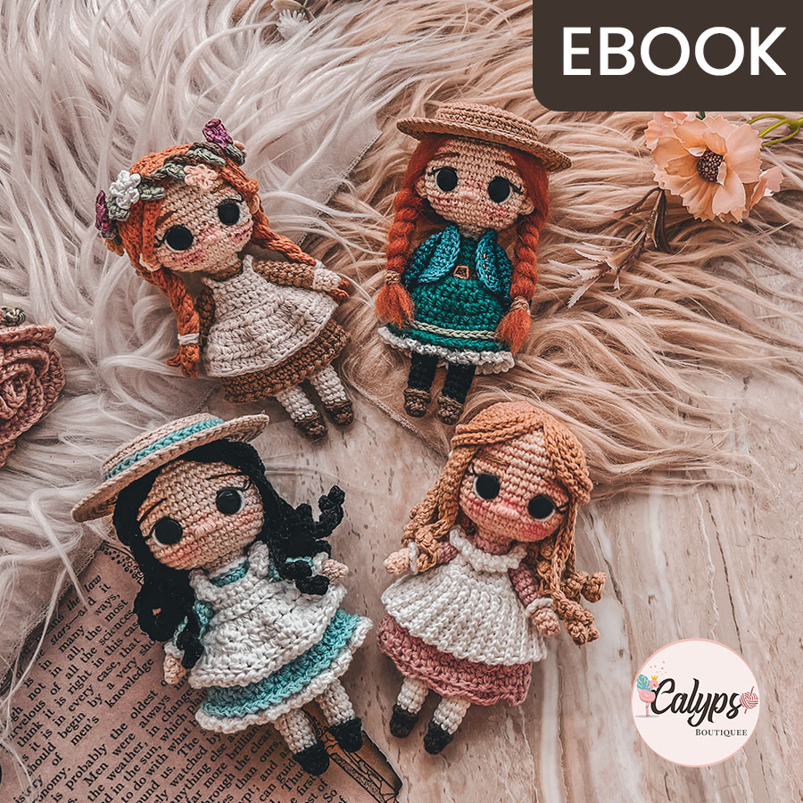 E-book de patrones que trae a Anne en sus dos versiones a Diana y a Ruby, en version pocket size, en amigurumi. La compra es un solo un PDF con los 4 patrones en él.