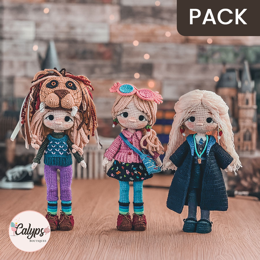 🌙 Déjate llevar por la magia con este pack de patrones inspirado en Luna Lovegood, uno de los personajes más entrañables del mundo mágico. Este diseño especial incluye tres versiones: Luna clásica con sus icónicos lentes, Luna con su inolvidable gorro de león y Luna con el uniforme de Ravenclaw.